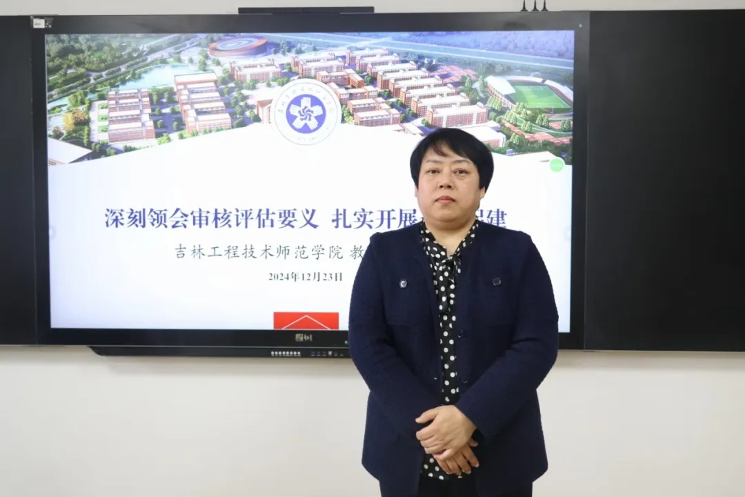 为进一步深化教师对审核评估工作的理解与把握,深刻理解审核评估的内涵及具体工作方式方法,提升工作效率与质量。2024年12月23日8:50,学院邀请吉林工程技术师范学院教务处孙艳红专家开展审核评估培训会,语言文化学院·新媒体学院全体教师参加,此次培训会由陈院长主持。