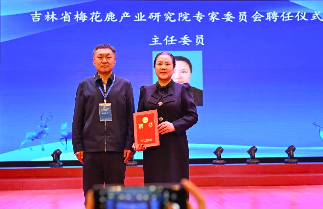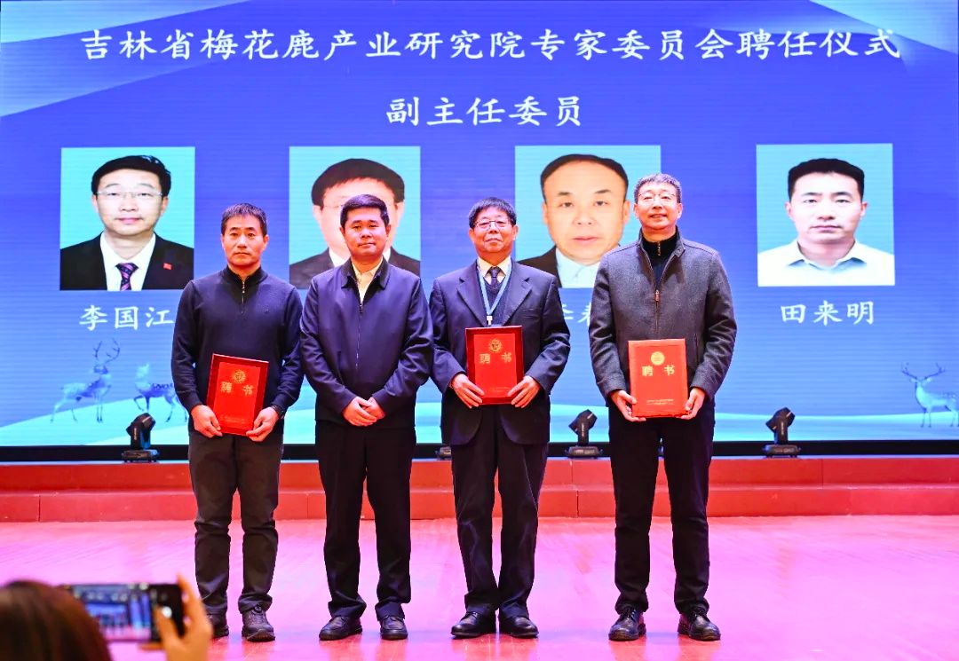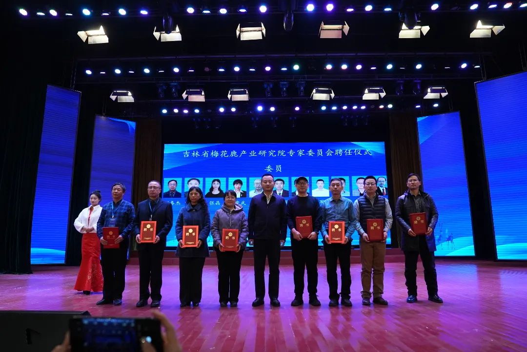 领导致辞后,举行了吉林省梅花鹿产业研究院专家委员会成员聘书颁发仪式。迟俊杰副局长、李勇副区长、全国畜牧业协会鹿业分会会长杨福合、吉林省畜牧兽医科学研究院院长侯绪森、双阳区委组织部常务副部长王国奇、双阳区畜牧业管理局局长李东旭分别为主任委员、副主任委员、委员颁发聘书。