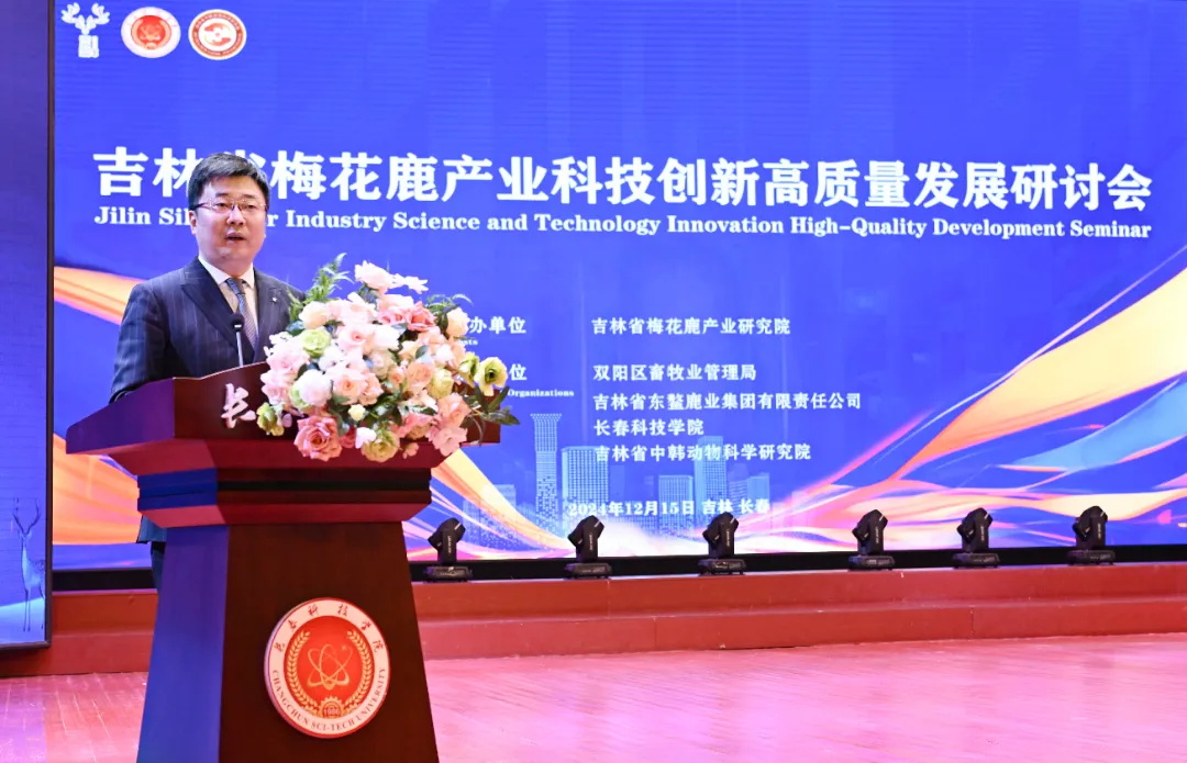 12月15日,吉林省梅花鹿产业科技创新高质量发展研讨会在长春科技学院东鳌学术论坛—国际会议中心成功举办,汇聚了众多国内外行业专家、学者及企业代表参加,旨在聚焦吉林省宝贵的梅花鹿资源,全力打造梅花鹿保种繁育、科学养殖、产品精深加工及营销全产业链条,促进三产深度融合,推动梅花鹿产业高质量健康发展。研讨会由吉林省梅花鹿产业研究院、双阳区人民政府主办。双阳区畜牧业管理局、双阳区科技局、长春科技学院、吉林省中韩动物科学研究院、吉林省东鳌鹿业集团有限责任公司协办。