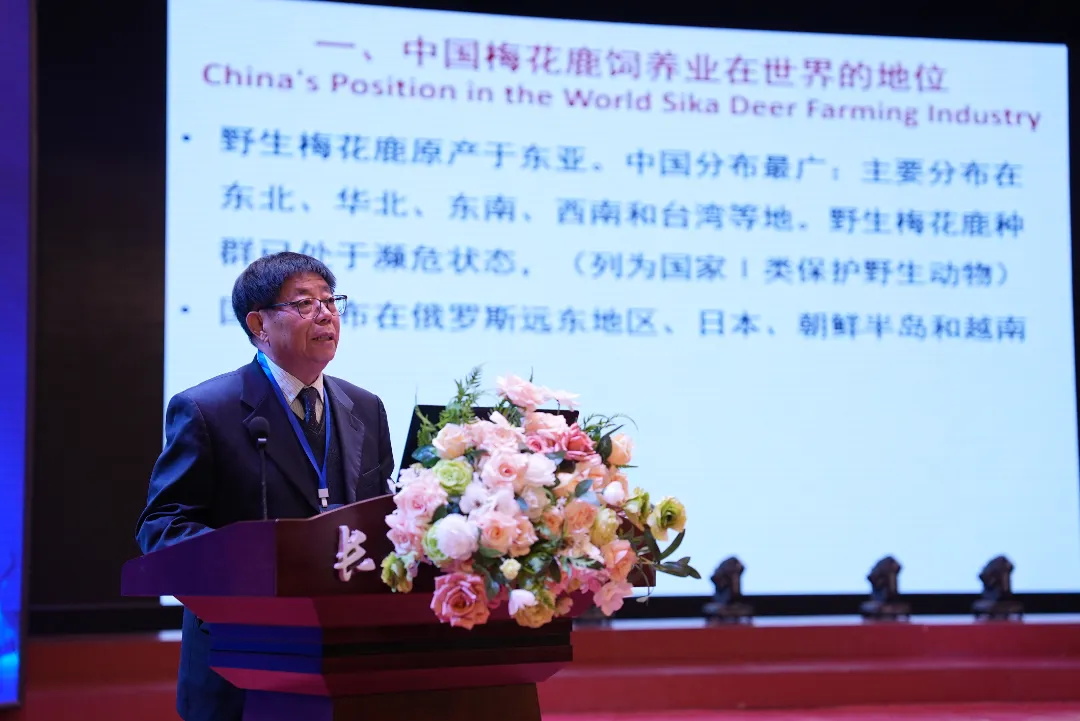 全国畜牧业协会鹿业分会会长杨福合以《中国梅花鹿产业发展现状及展望》为题作报告