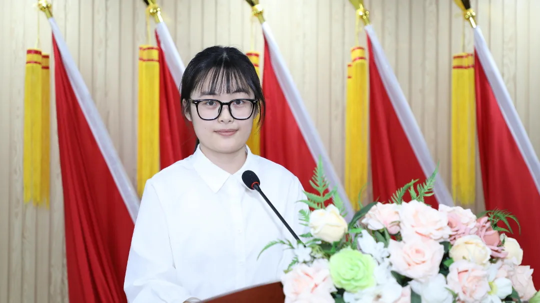网络育人标兵、网络安全宣讲师党委宣传部宣传科科长田天圆宣读倡议书