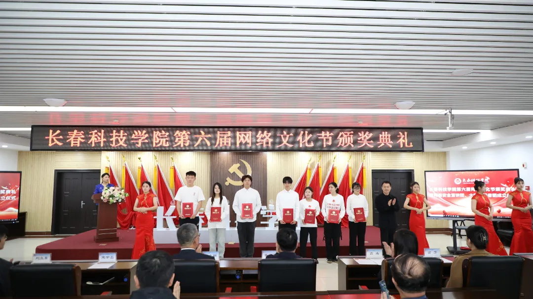 仪式上,高杰宣读《关于表彰长春科技学院第六届网络文化节优秀集体和个人的决定》,孙大伟宣读《网络安全宣讲师、宣讲员聘任名单》以及《大学生记者团聘任名单》。