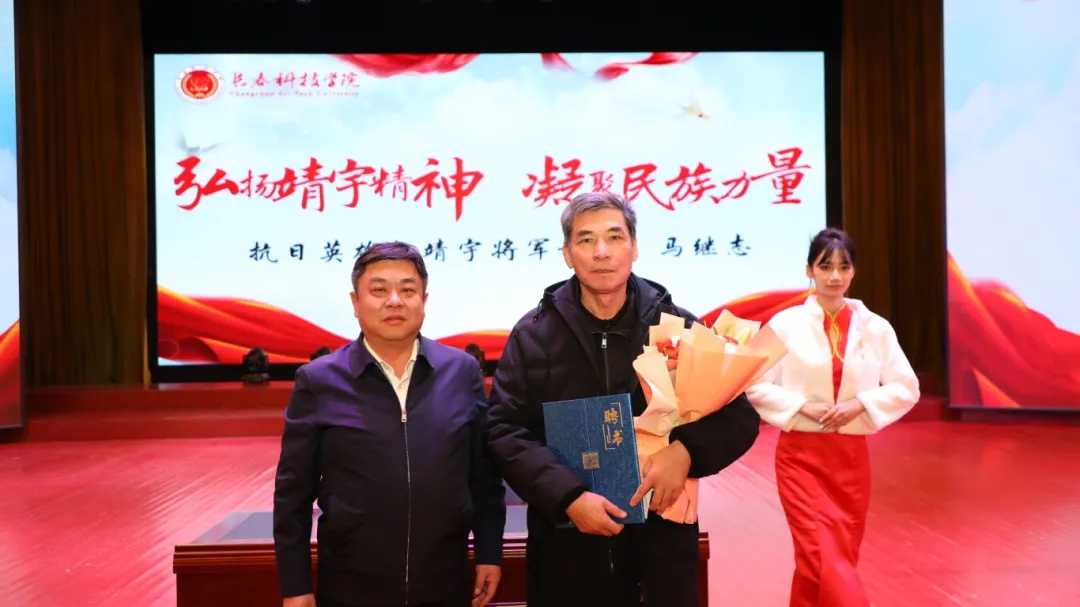 活动中,党委书记崔高嵩为马继志老师颁发了特聘证书。马继志老师是抗日民族英雄杨靖宇将军的嫡孙,也是资深的红色文化研究者与教育工作者。