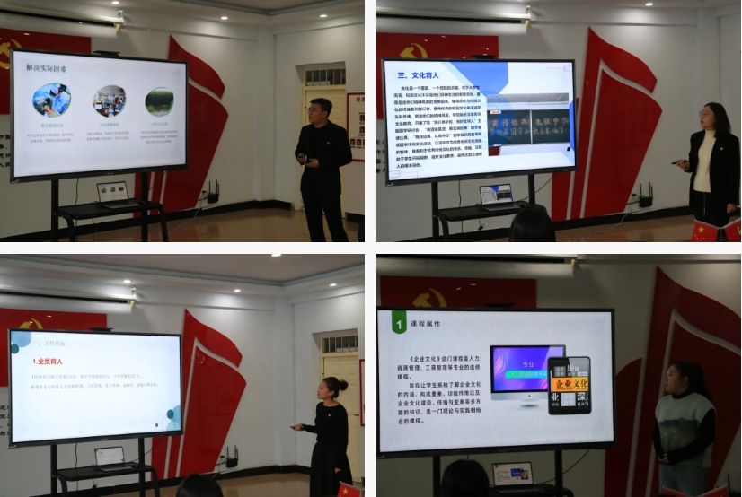 在汇报过程中,每位教师以所授课程为核心,从课程定位、课程内容设计、教学方法、教学反馈、教学效果以及课程思政的融入等方面进行了全面且深入的阐述;辅导员老师结合自己在工作岗位多年的经验,分别从学生思政教育、班级管理、心理健康教育、组织校园文化活动、引导学生职业发展规划等,阐述了相关举措、方法、经验,体现出辅导员工作对学生成长的重要性与独特价值。