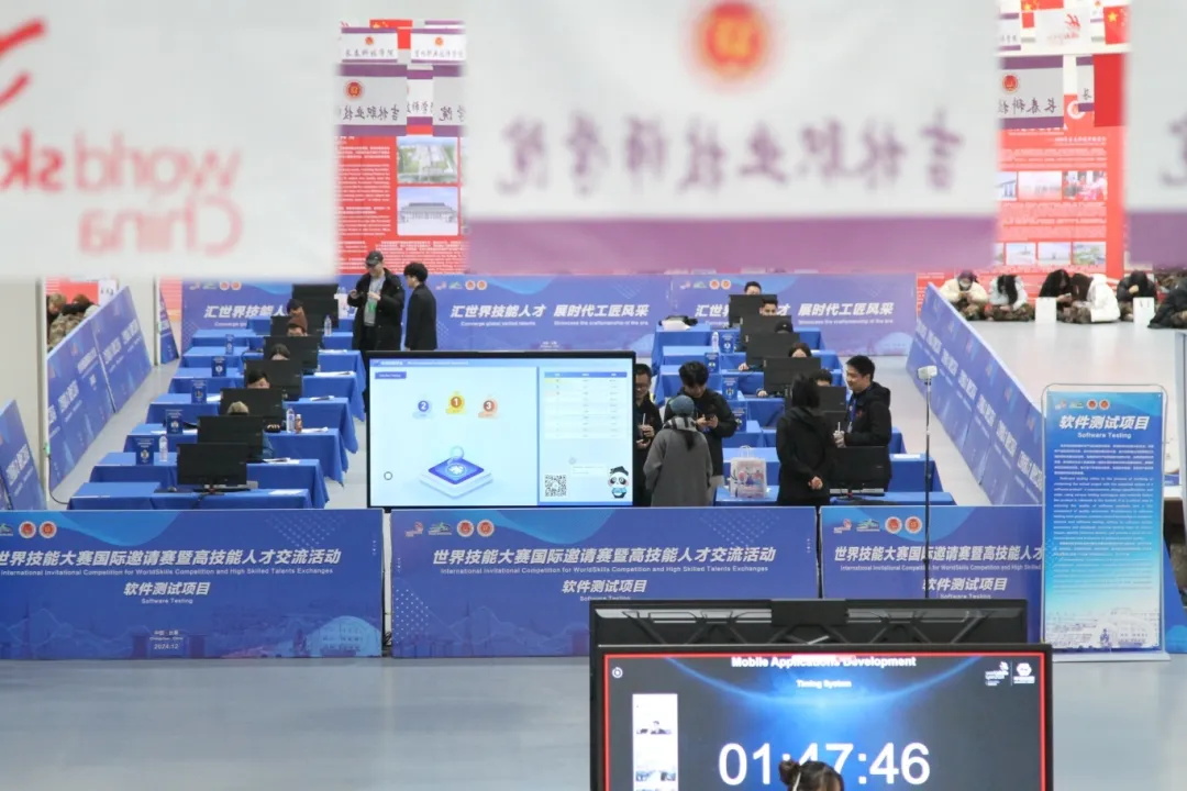 邀请赛包括移动应用开发、软件测试2个项目。吸引了来自7个不同国家和地区的12支队伍的20名选手参赛。赛场上,选手们全神贯注,一展身手,力求将平日所学、所练完美呈现,打造出兼具实用性与创新性的移动应用成果,展现全球高技能人才在数字赛道上的卓越风采。