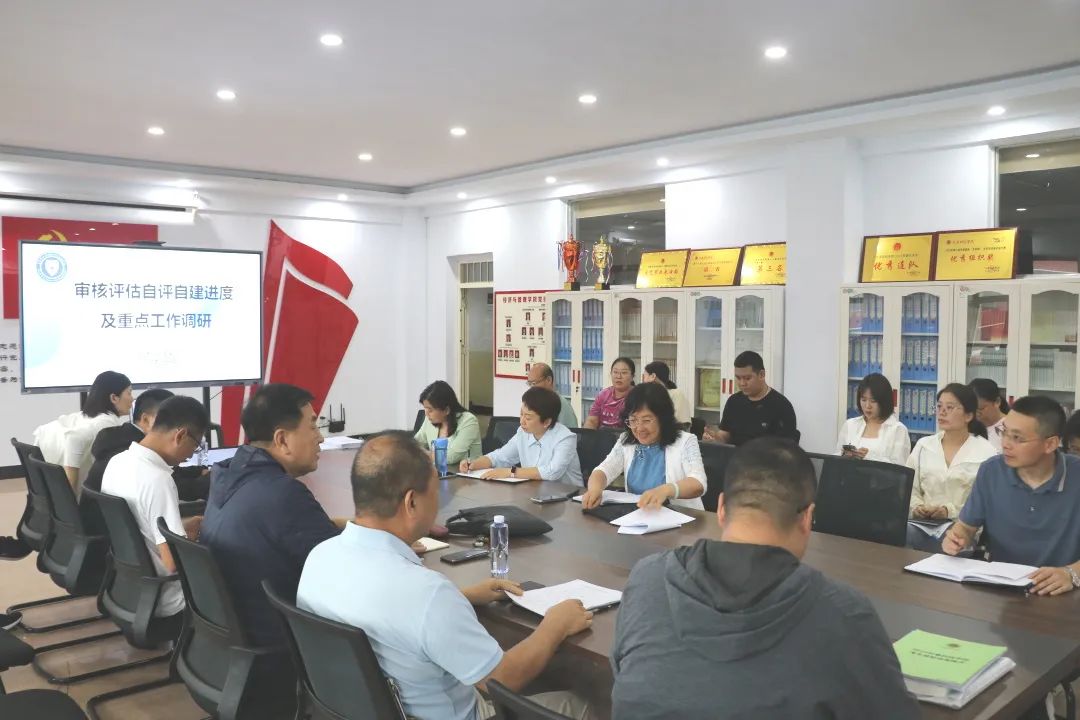 为全面提升学院教育教学质量,扎实推进教育教学审核评估自评自建工作,9月4日由学校副校长张代治亲自带队深入经济与管理学院开展调研、检查和指导工作。同行人员有教务处处长、学校评建办主任唐敬仙、就业处处长于斌、招生办公室副主任李赫宇、评建办副主任裴怀全及学校评建办专员。会议由经济与管理学院院长王晓光主持,经济与管理学院评估小组成员及各专业主任、副主任出席。
