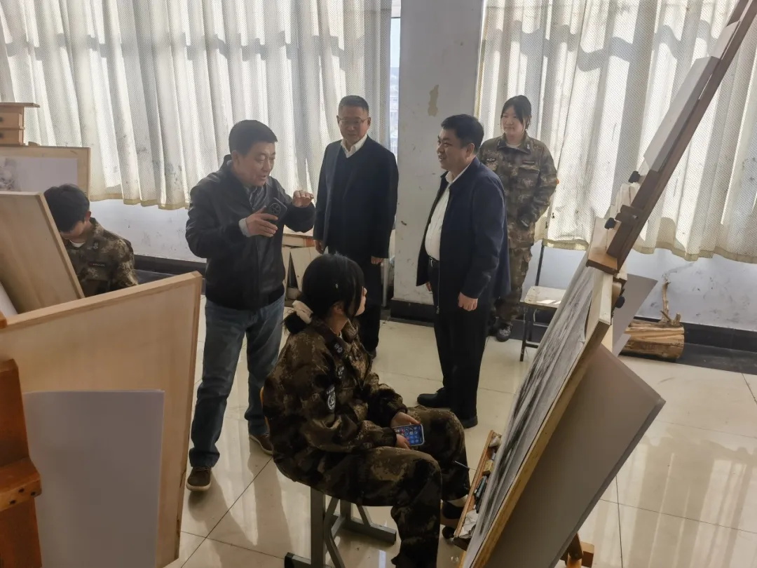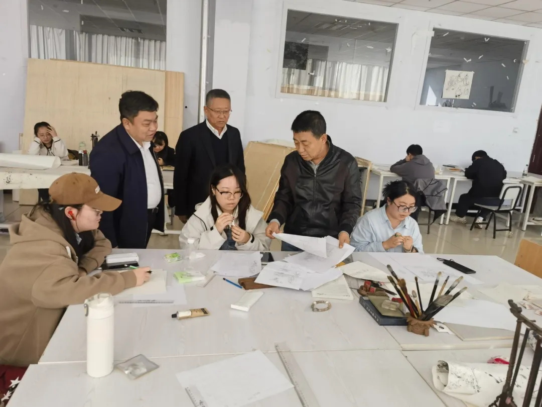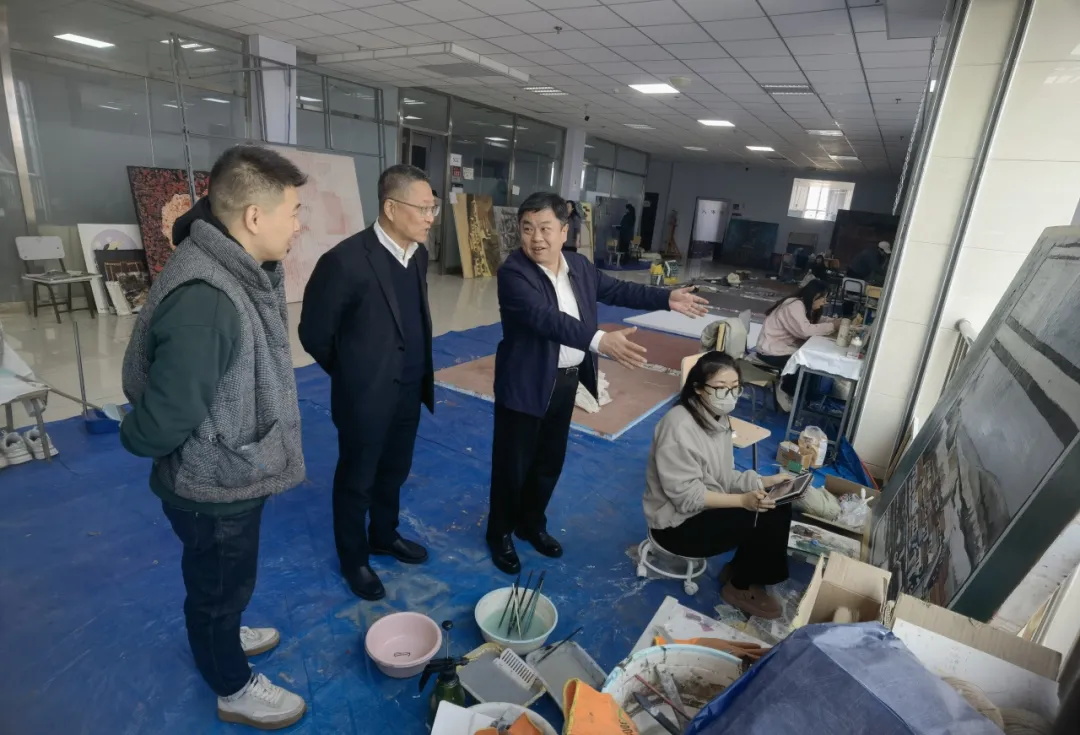 在教学设施区域,栾校长与教师们进行交谈,了解教学情况,并对学院为学生提供的良好学习条件表示肯定。而在学生作品展示区,一幅幅充满创意和艺术感染力的绘画作品,让栾校长和崔书记频频驻足欣赏。他们与在场的师生们亲切交流,询问创作思路和过程,对学生们的才华和努力给予了高度赞扬。