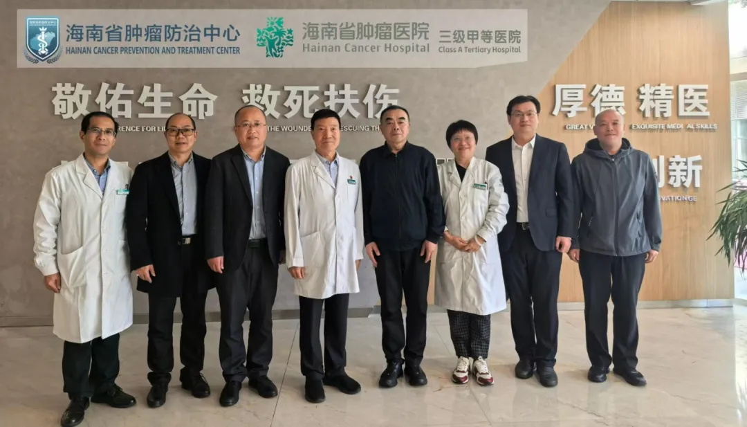 次日,张电达一行四人前往海南省肿瘤医院,了解该院精细化管理、营养健康、数智医疗、科学研究及人才培养等情况。与院长高继河、杨院长以及科教部主任马志超进行了交流座谈。期间,张电达介绍了集团组成、业务范围及人才培养情况。院方则介绍了医院发展历程、多学科专家资源及带教模式。双方围绕产教融合、实习、联合培养医学人才等展开深入探讨,并达成初步共识。