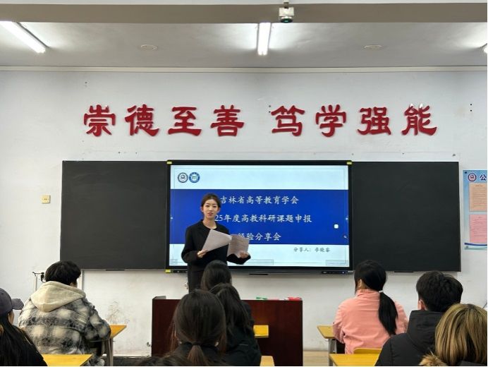 会议最后,王悦老师对本次分享会进行了总结,鼓励同学们积极准备申报材料,充分发挥团队协作精神,争取在2025年度吉林省高等教育学会高教科研课题申报中成功立项。
