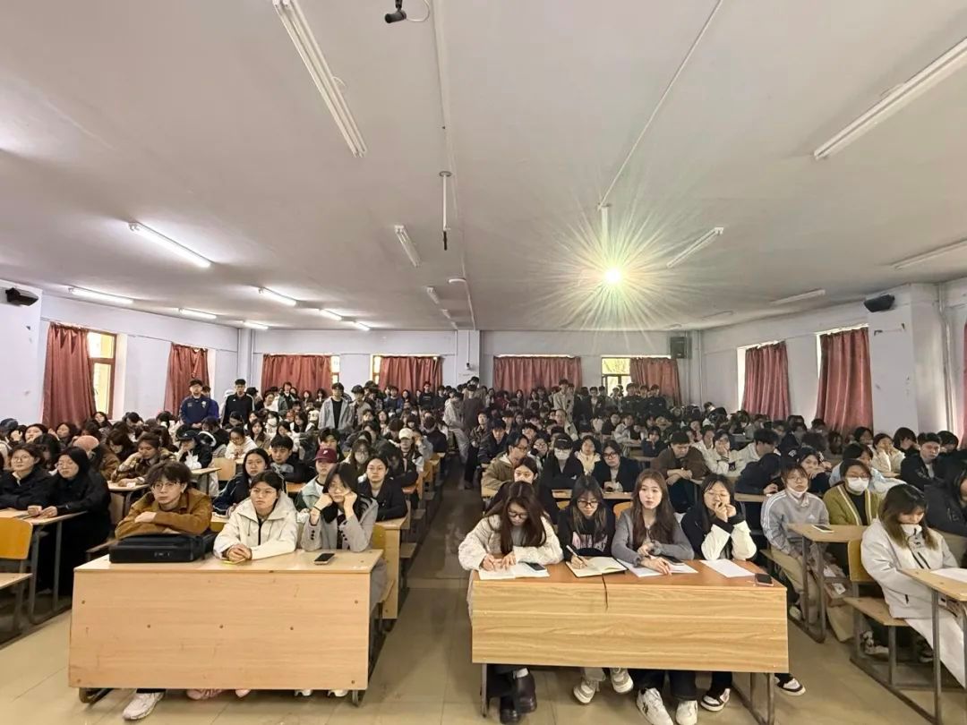 随后,朱老师结合学院实际,对审核评估的重点内容进行了解读。她围绕评估指标体系中的办学定位与人才培养目标、师资队伍、教学资源、培养过程、学生发展、质量保障等方面,逐一分析了学院在这些方面的工作基础与特色亮点。她强调,同学们是学院教育教学活动评估工作的重要参与者,希望大家从思想上高度重视,积极主动地了解评估、支持评估、参与评估。