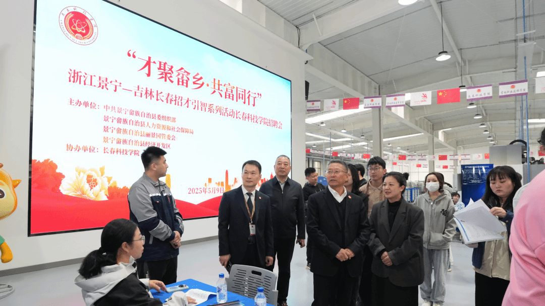 为贯彻落实“双招双引”战略部署,深化区域人才资源协同发展,5月9日,由中共景宁县委组织部、景宁县人力资源和社会保障局、丽景园民族工业园区、景宁县经济开发区管委会联合主办,长春科技学院协办的2025年“才聚畲乡·共富同行”浙江景宁—吉林长春招才引智系列活动成功举办。活动通过招聘会、座谈会、校企洽谈及企业考察等形式,推动政校企三方精准对接,为区域高质量发展注入新动能。
