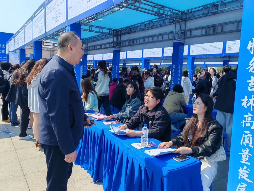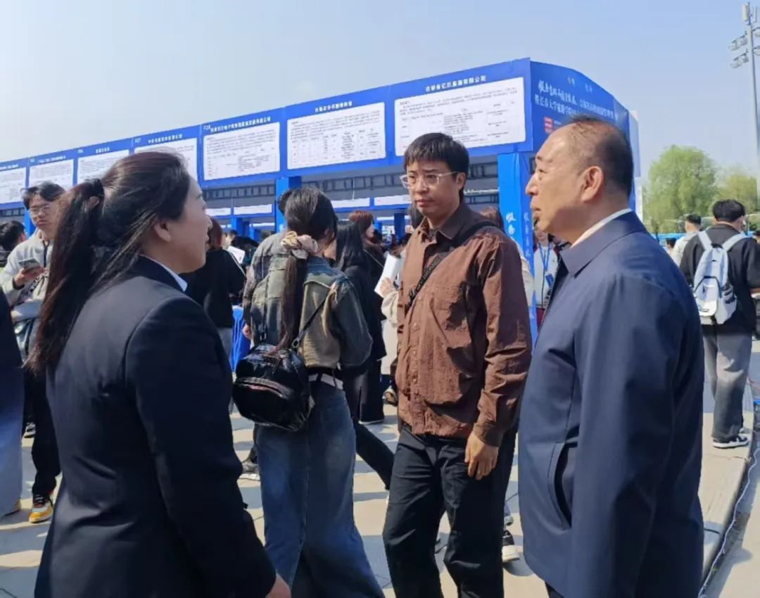 于斌处长第一时间来到招聘会现场,并与各企业及用人单位进行深入交谈,了解用人单位对学校人才培养的意见和建议,促进校企合作,希望与用人单位加强沟通交流,深化合作,进一步巩固拓展成效,推动学校2025届毕业生实现高质量充分就业。