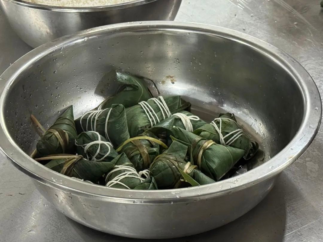 本次活动制作了两种口味的粽子,一是蜜枣粽,蜜枣则选用甜度高、肉质紧实的金丝蜜枣,其富含维生素B12、钙和铁等营养成分,具有养血安神、补中益气、防治贫血等功效,对中老年人、青少年和女性益处多多 。粽叶可选用新鲜的箬叶,自带清新香气,使用前需放入开水中煮几分钟,以增强韧性并杀菌消毒 。蜜枣粽子不仅是美味的传统食品,还能为人体补充能量、改善肠胃功能、安神助眠、补血养颜 ,但由于其糖分较高,食用时要注意适量 。