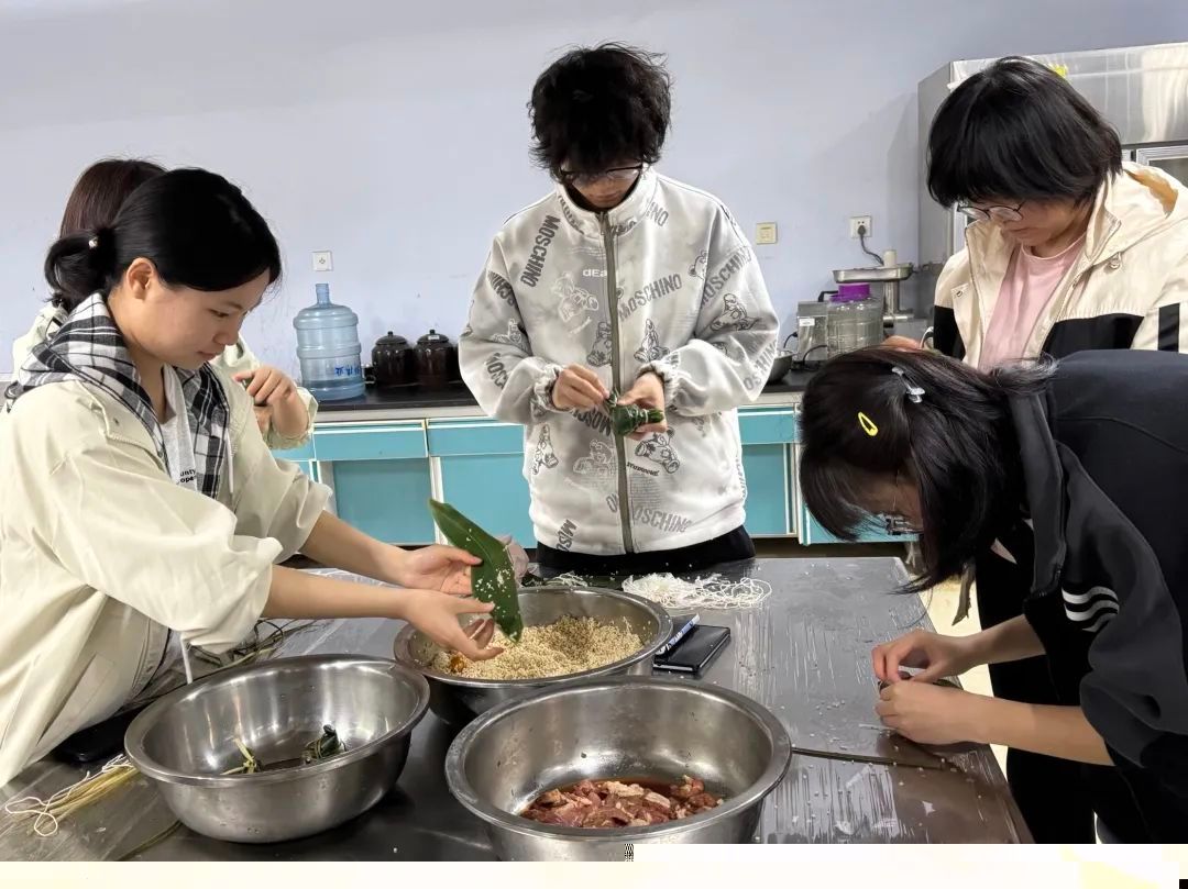 活动中,同学们热情高涨,积极动手实践。在专业老师的指导下,大家逐渐掌握了包粽子的技巧,一个个形态各异的粽子在手中诞生。现场还设置了知识问答环节,围绕“药食同源”和粽子食材的营养价值进行提问,同学们踊跃参与,进一步加深了对传统食疗文化的理解 。