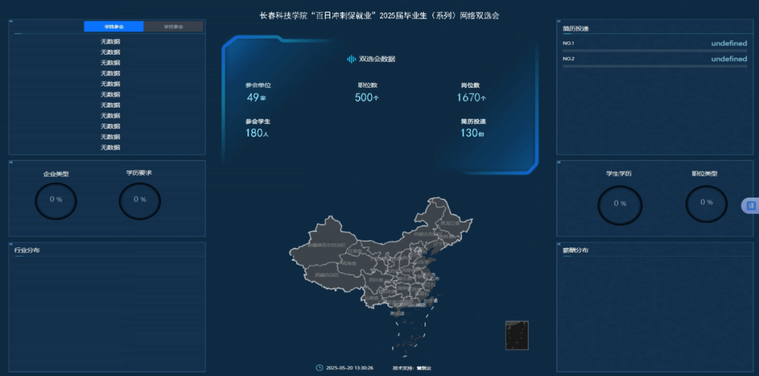 本次系列网络双选会筹备阶段,学校就业工作处广泛联络各地优质企业,深入了解企业人才需求,结合学校专业设置和学生特点,精准筛选参会企业,确保提供的岗位与学生专业高度匹配。在活动期间,共有49家参会单位,其中省内35家,省外14家,提供300个职位,就业岗位1670余个;涵盖金融、教育、信息技术、智能制造、生物医药等多个热门领域,为不同专业的毕业生提供了丰富的就业选择。据统计,本次系列网络双选会吸引了学校2025届180余名毕业生积极参与,累计投递简历130份,企业浏览简历125次,初步达成就业意向36人。