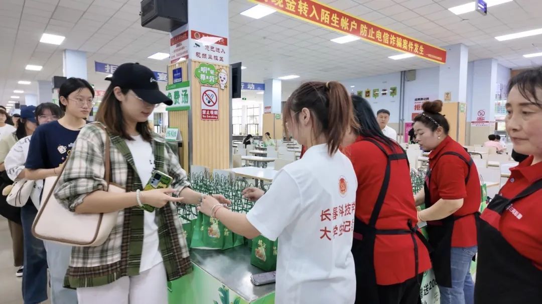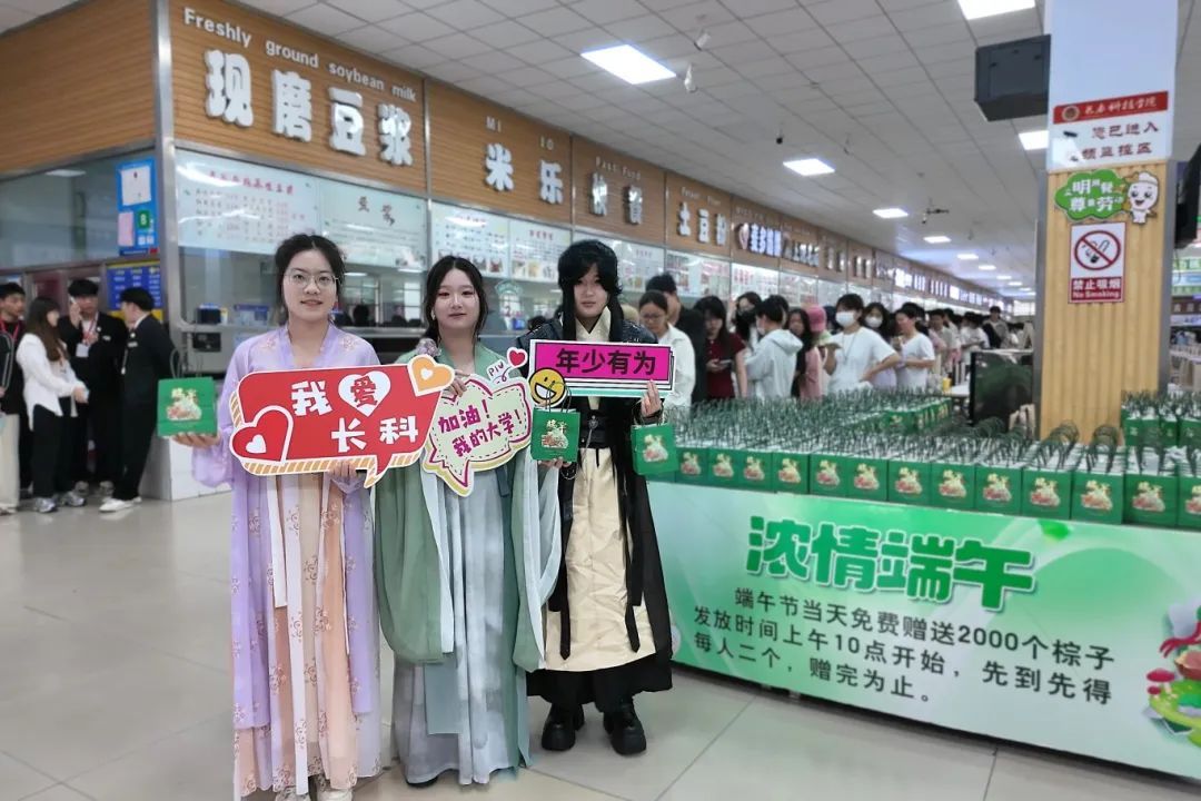 上午十时,学校饮食服务中心(学生食堂)一楼早已排起长队。白净的餐台上摆放着热气腾腾的粽子,免费发放点前,学生们有序领取,笑声洋溢。校大学生记者团策划的“情系长科·端午安康——汉服雅韵传文化,粽香寄情暖校园”主题系列活动引人驻足。身着飘逸汉服的学生在领取粽子的同时,定格下传统与现代交融的青春瞬间,获赠专属写真电子照片。将照片配文“长科端午+祝福语”分享至朋友圈,即可再获一份承载校园记忆的文创纪念品。一袭汉服,一枚香粽,一次分享,古老仪轨在青春实践中焕发新生。