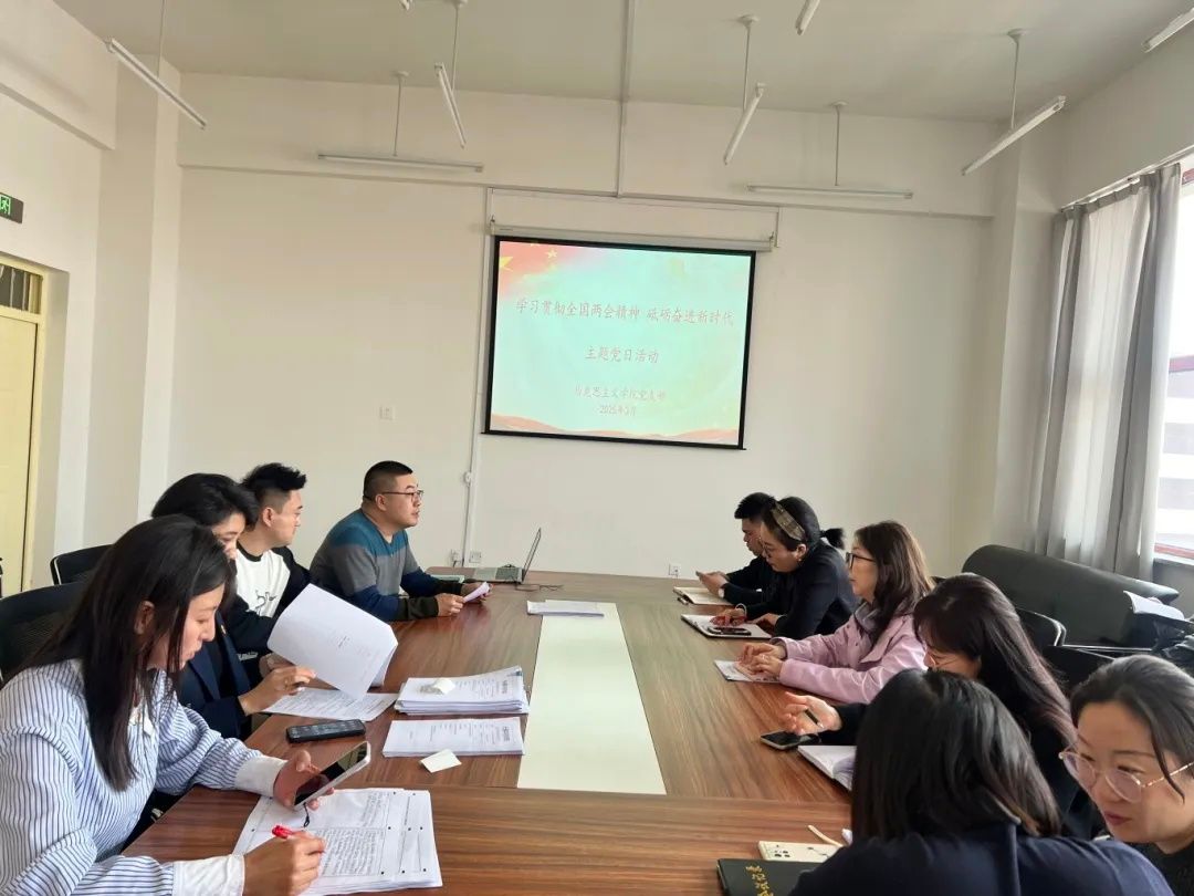 首先,党支部组织委员郭健新带领全体党员教师共同学习了《2025年政府工作报告》,并强调党员同志要读懂其中的“为民”初心、“发展”蓝图、“创新”路径,积极将两会精神融入到课堂当中。在新时代新征程中勇挑重担,奋力书写属于自己的精彩篇章。